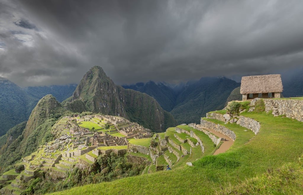 After soaking in the views, hike down from the Sun Gate to the guardhouse of Machu Picchu.