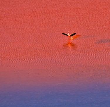 Continue exploring the Andean wonders with a visit to Laguna Colorada, a blood-red lake home to thousands of pink flamingos. Then journey through unique landscapes such as Italia Perdida, a maze of volcanic rock formations resembling ancient ruins. Visit Catal and Vinto Lagoons, peaceful sanctuaries for Andean wildlife. As the sun sets, enjoy a peaceful evening surrounded by silence and stars.