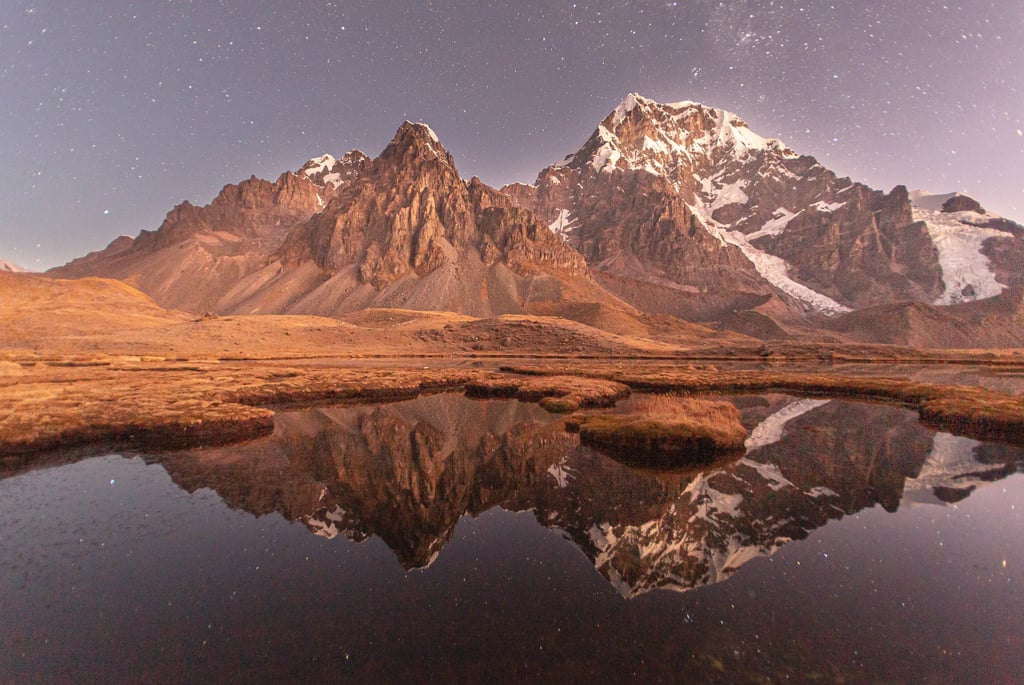We will wake you up at 05:00 am with coca tea or coffee delivered to your Cabins and you are given a delicious breakfast for the day ahead. In The morning start hiking up to Arapa Pass (4968m) Along the way we are going to observe local farmers and alpacas, Ausangate snow-capped to your left side, and you will have English- a speaking guide explaining about flora, and fauna and talking about the landscape along the trail. if we are lucky we might see condor, chinchillas, and vicuñas. Also, we will enjoy colorful lakes and get to our campsite of Puca Cocha where we are going to be surrounded by high mountains and unbelievable hanging glaciers, watch and hear the glacier crashing into the tarns below! As usual, tents are going to be set up inside the mountain huts for us to change, take a nap, and have our lunch. Since this campsite is close to Puca Cocha Lake, you will go to the lake where you will see many types of ducks, Andean geese, and many other types of birds. Then you will have dinner at our dining room which is built with rocks and mud.